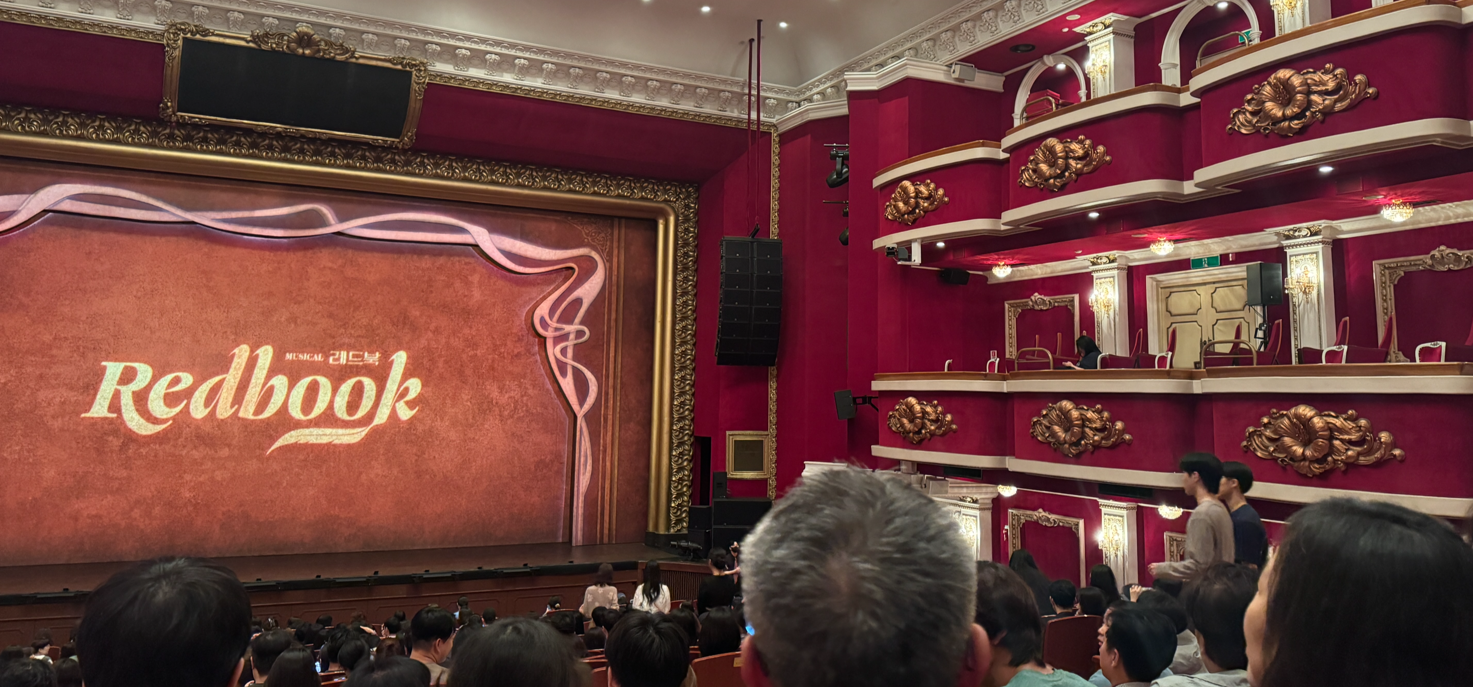 뮤지컬은 음향과 조명이 정말 중요한데 조명과 음향이 고르게 퍼져서 어느 자리에서도 몰입감이 높았어요. 특히 레드북의 피아노와 바이올린 중심의 오케스트라사운드가 홀 전체를 울려 퍼지는 느낌이 집중력 상승입니다!