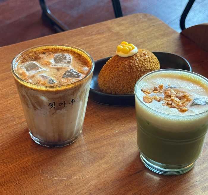 저는 툇마루커피, 나나말차, 옥수수슈를 주문했어요