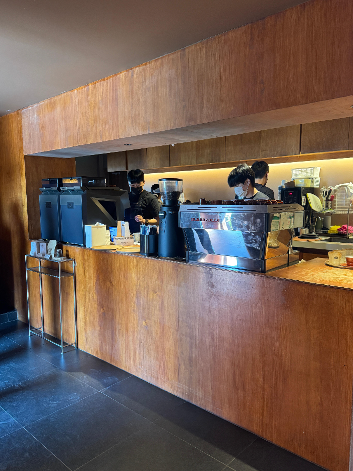 야외 테라스를 이용하려고 했지만 아기 안전 문제로 이용이 불가하다는 안내를 받아서 실내에 들어갔지만 실내는 조용한 분위기라 아이가 조금만 조리를 내도 시선이 와서 부담스러웠어요 실내에는 자리가 많지 않고 자리 확보가 협소해서 아기의자나 유모차는 절대로 불가했어요. 그래서 저는 결국 10분도 채 머무르지 못하고 바로 나와야 했습니다